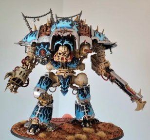 When on campaign on worlds with open skies, most of the house’s scions spend as much time as possible within their armours, as a means of avoiding the insane emptiness without the comfort of a roof of steel and bone over their heads. Despite this and the ample time that the thrones mechanicum have had to work their influence on the minds of the House’s pilots, their closed blunt souls have made the process painstakingly slow. What protocol and ritual exists revolves around the veneration of living flames, tests of cold weather endurance, the freeze-branding of kill markings upon their flesh and the eating of the heart and eyes of especially esteemed foes.